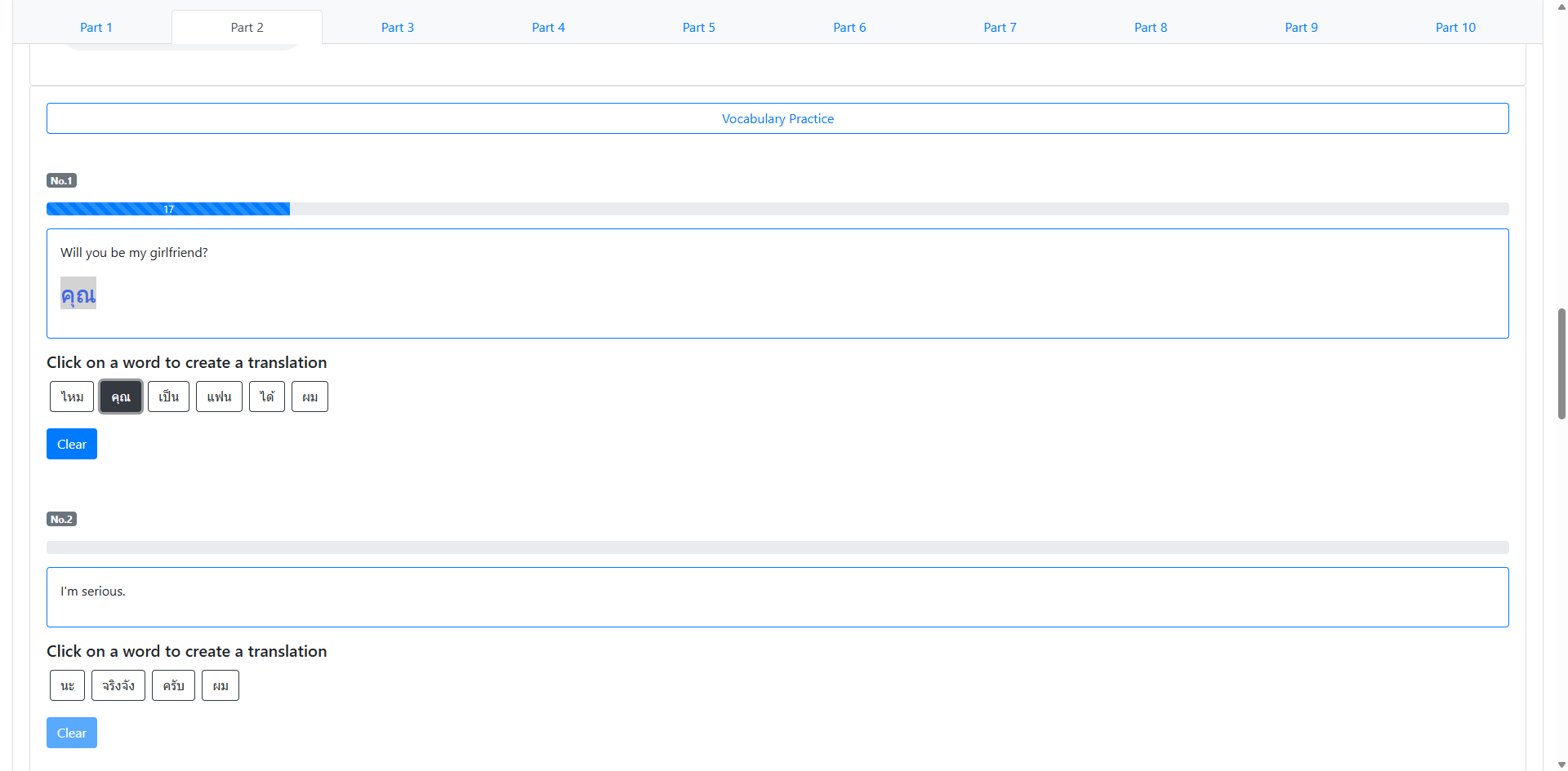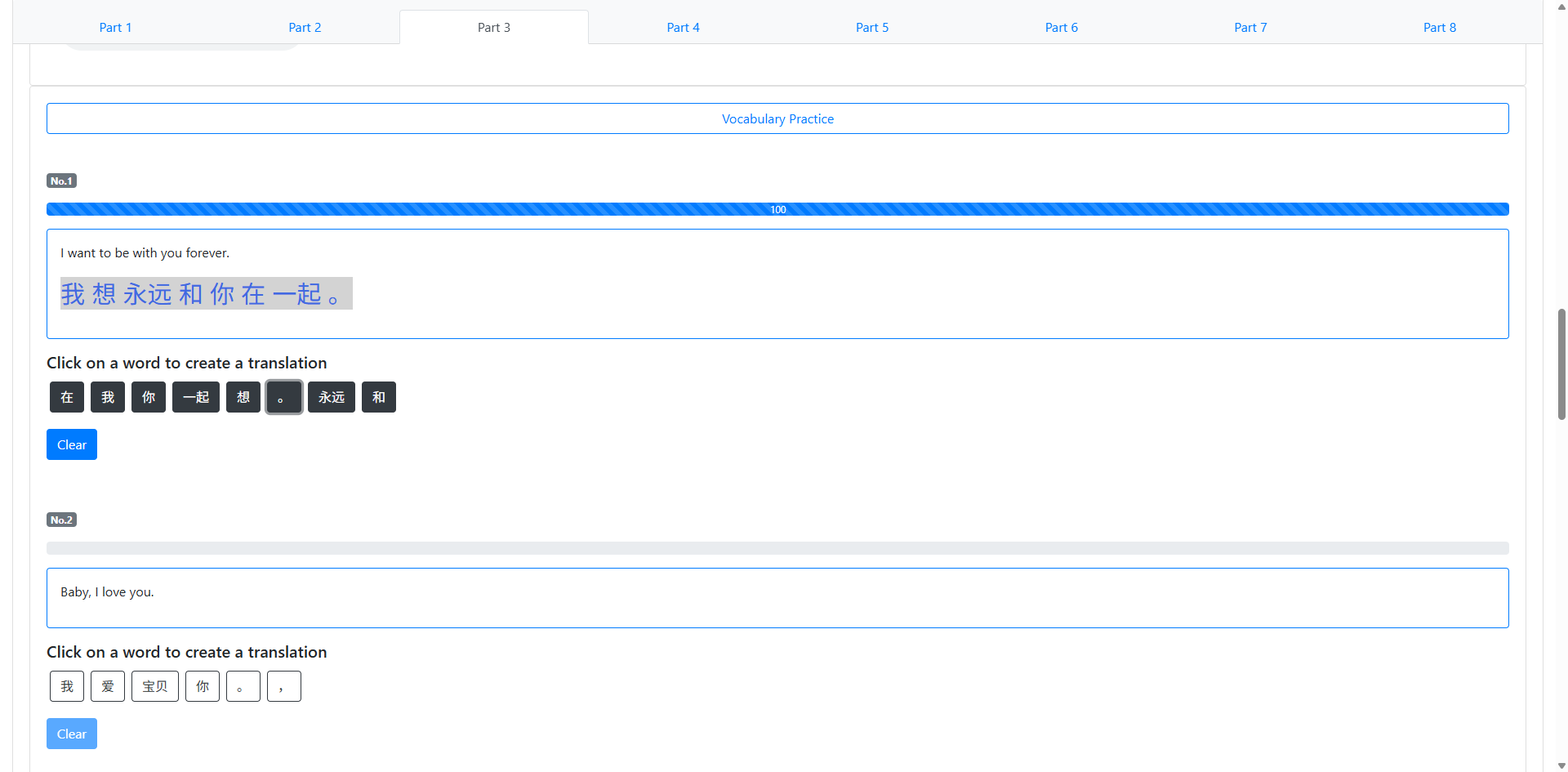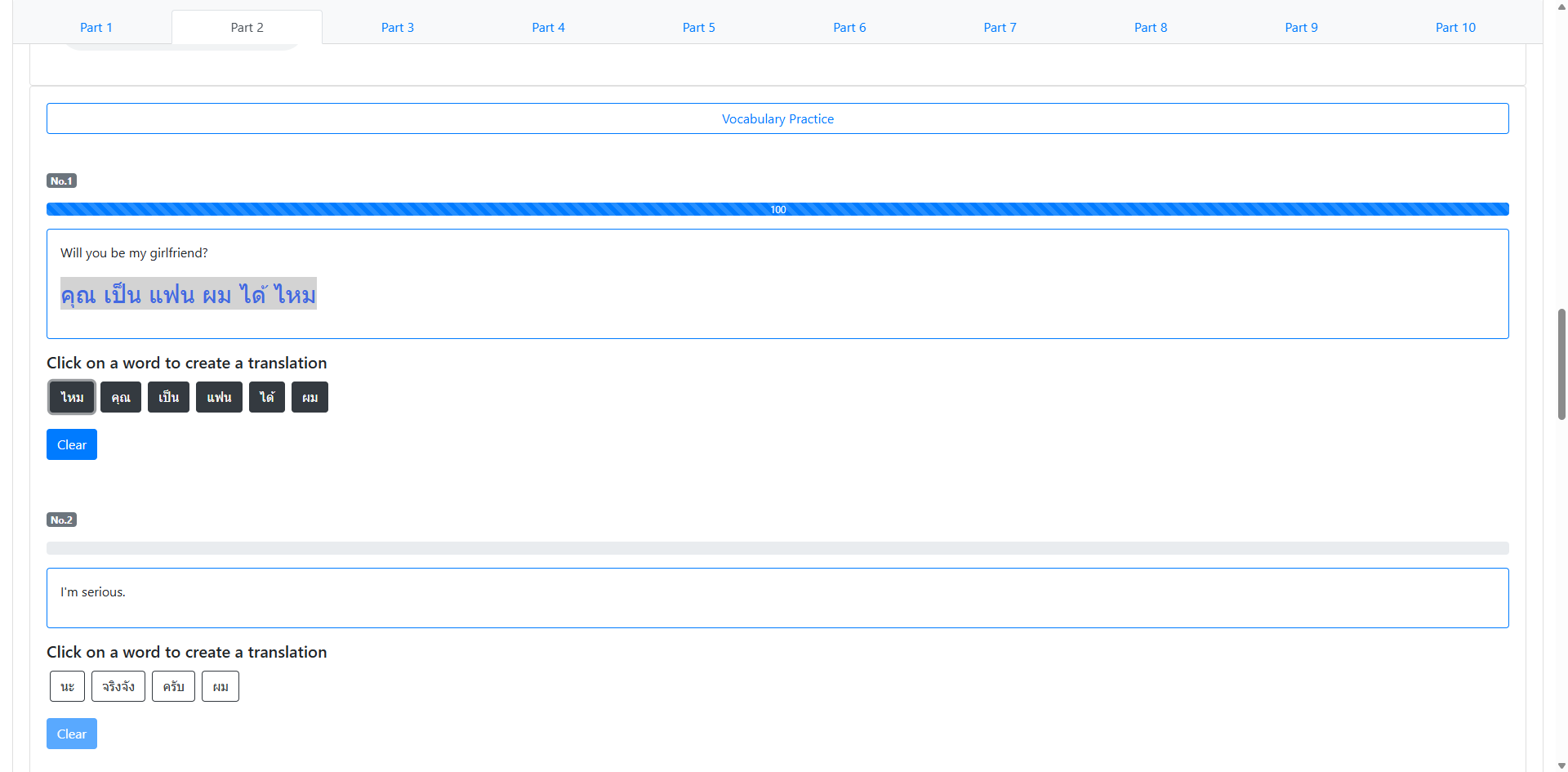 When all the selected words form a correct sentence, the progress bar becomes 100 percent.